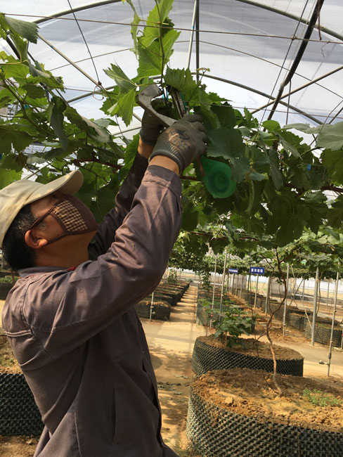 走進炎熱的六月,種養(yǎng)中心大棚內(nèi)的葡萄也迎來了第三個果期 ——坐果,果實的第一次膨大。中心工作人員及時 摘心、去副梢,適當控制營養(yǎng)生長,以利于集中營養(yǎng)供應果實的生長發(fā)育;及時綁縛新梢,為下一期的轉(zhuǎn)色、成 熟做好鋪墊。(宋姍姍)
