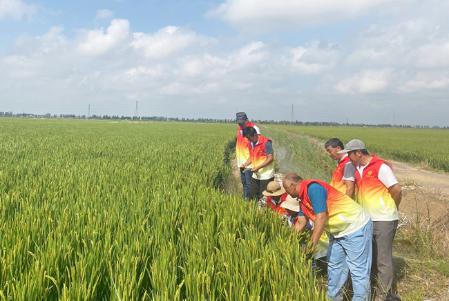 大新農(nóng)場黨支部踐行“兩在兩同”建新功行動(dòng),黨員志愿服務(wù)隊(duì)深入田間地頭,針對近期陰雨天氣對部分條田造成的稻瘟現(xiàn)象進(jìn)行現(xiàn)場“會(huì)診”,因天、因田、因病、因蟲開展防控,做到安全用藥與防治效果雙提高。主動(dòng)扛起責(zé)任與擔(dān)當(dāng),把防病治蟲放在心頭,為大新農(nóng)場農(nóng)業(yè)生產(chǎn)提供強(qiáng)有力的技術(shù)支撐,為農(nóng)業(yè)穩(wěn)產(chǎn)作貢獻(xiàn)。(大新農(nóng)場支部)