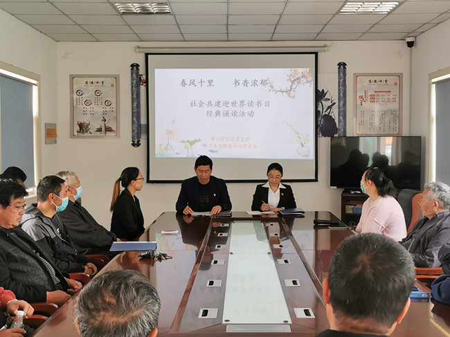 4月23日為“世界讀書日”。為營造黨員職工養(yǎng)成“愛讀書、讀好書”的好習(xí)慣,20日下午,生產(chǎn)生活服務(wù)中心黨支部與黃沙坨社區(qū)黨支部聯(lián)合開展“春風(fēng)十里書香濃郁”---迎世界讀書日經(jīng)典誦讀活動,進一步提升了社企共建融合氛圍。