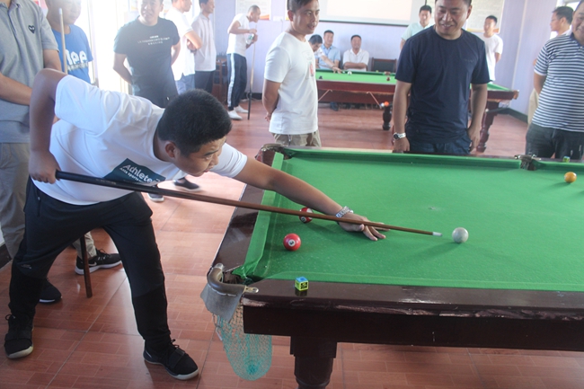 ? ? 臺(tái)球初賽采用三局兩勝淘汰賽制,抽簽決定比賽對(duì)手和上場(chǎng)順序,第一輪勝出者進(jìn)入下一場(chǎng)比賽,前四名選手進(jìn)入決賽。本次共有32名選手報(bào)名,參賽隊(duì)員雖然都是業(yè)余愛(ài)好者,但每名參賽選手態(tài)度非常認(rèn)真,臺(tái)球桌前,他們不停地走動(dòng)尋找最佳擊球點(diǎn),架桿、出桿、撞球、落袋,過(guò)程緊張而激烈,博得觀眾陣陣掌聲。經(jīng)過(guò)多輪角逐,服務(wù)中心張建軍獲本次比賽的冠軍,大新農(nóng)場(chǎng)徐振濤、候玉剛及服務(wù)中心張根林獲得二等獎(jiǎng)。