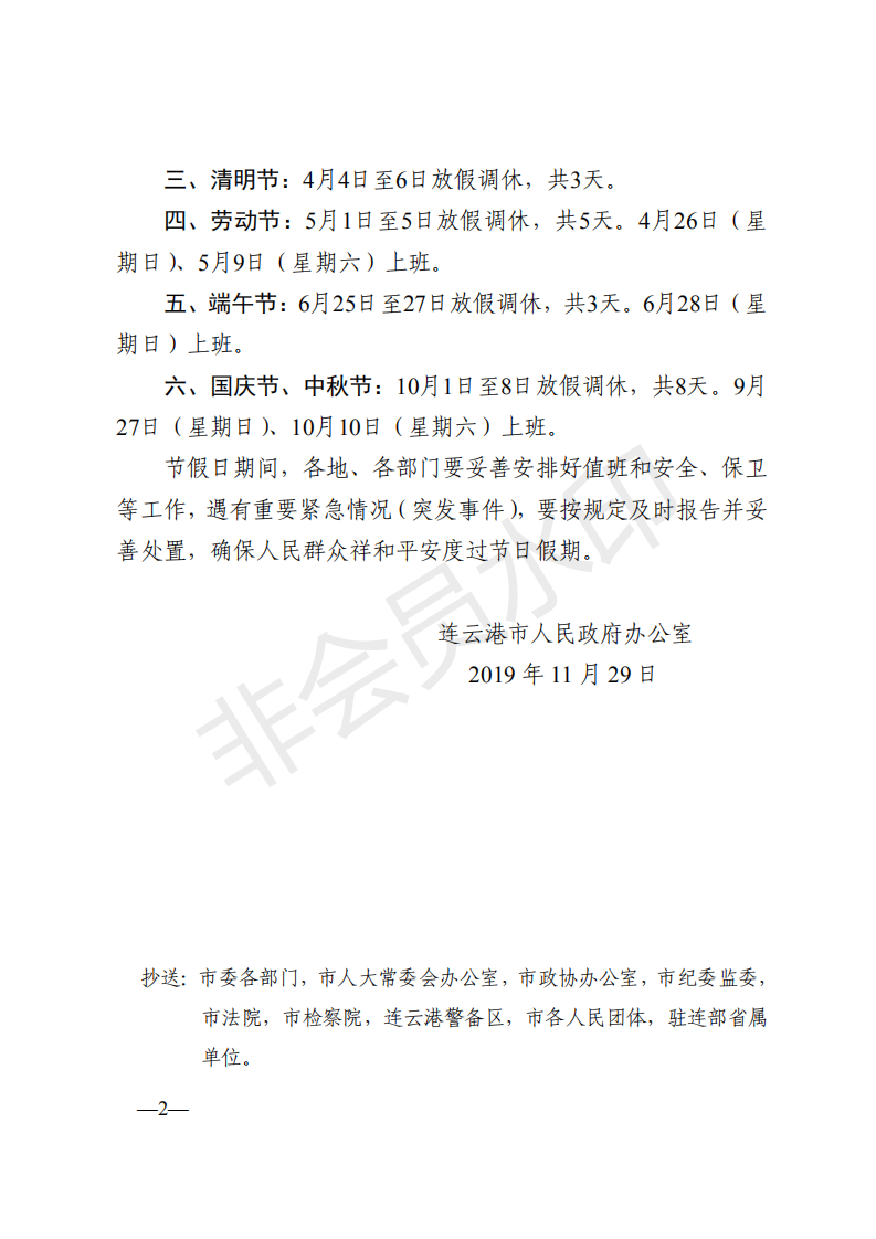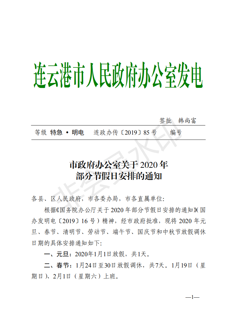 市政府辦公室關于2020年部分節(jié)假日安排的通知