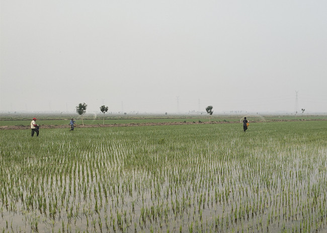 (對(duì)秧苗進(jìn)行撒施分蘗肥)