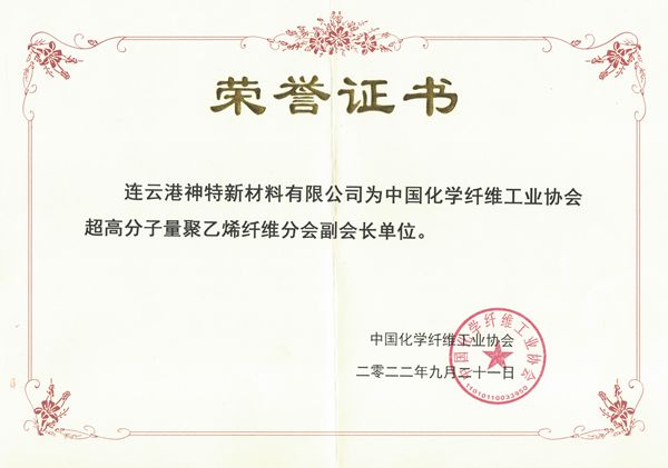 會上進行了超高分子量聚乙烯纖維分會換屆,我公司當(dāng)選副會長單位。(神特宣)