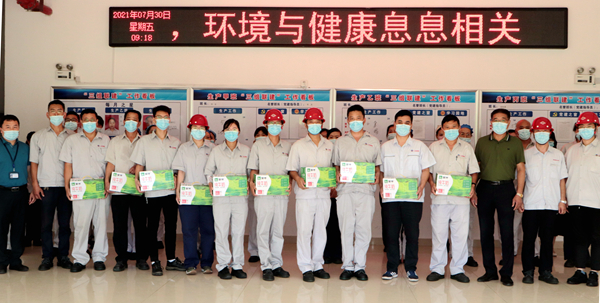 劉承志主席為生產(chǎn)一線員工送來牛奶、綠豆、白糖、大米等防暑降溫慰問品,細心叮囑要認真做好防暑降溫和疫情防控工作,確保平安度過夏天。(神特宣)