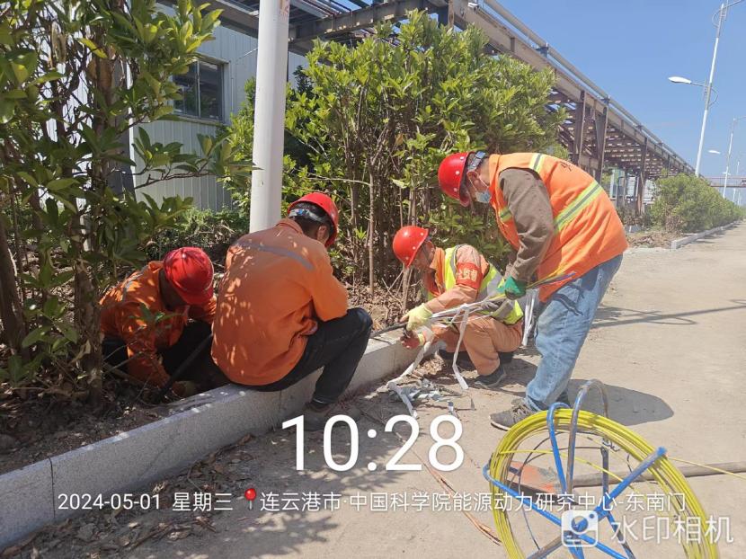 在中科院的路燈電纜施工現(xiàn)場,2000來米的電纜穿管工程時間緊任務(wù)重!舊路燈基座電纜孔全被泥土堵塞,穿線相當困難!在“老黃?!眴桃猿蓭ьI(lǐng)下,市政班組全員在崗,集思廣益克服困難。大家顧不上烈日當頭、蚊蟲叮咬,合起號子加油干,確保兩天拿下全部工程量。