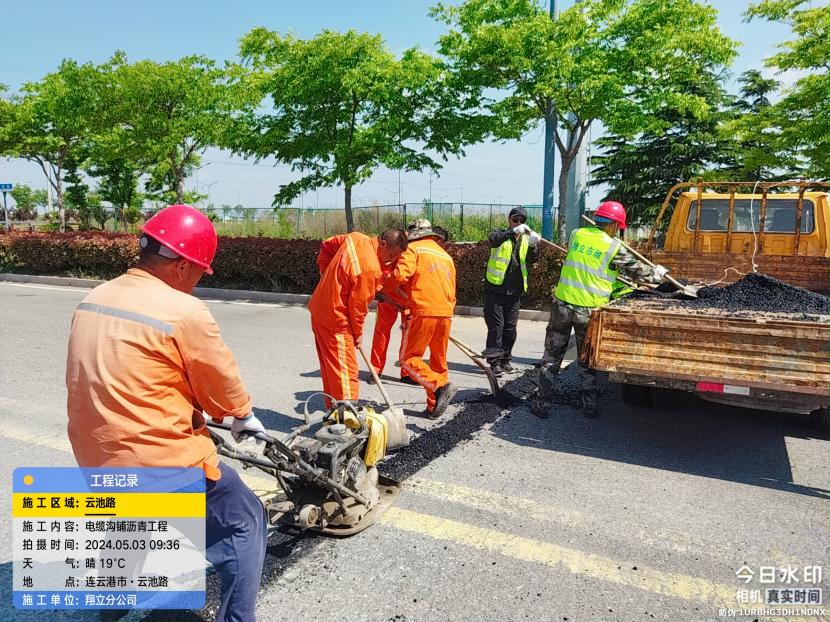云池路電纜開槽溝下過路鋼管路面瀝青恢復(fù)工程,這是翔立人第一次干瀝青鋪設(shè)活,看起來有模有樣。