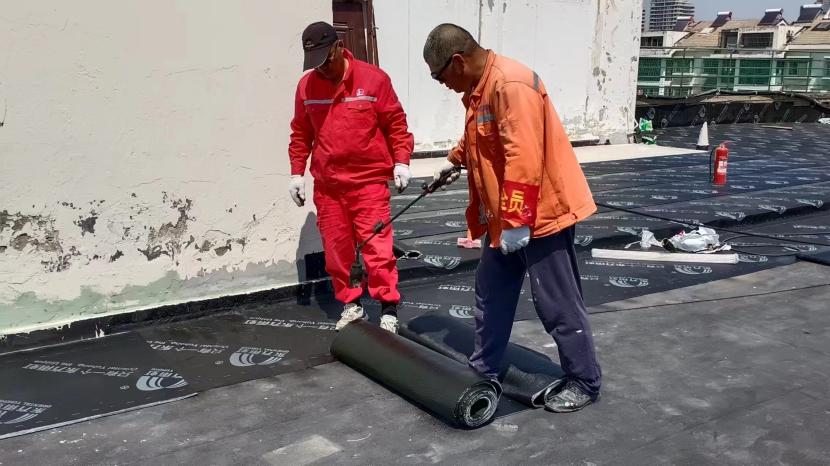 在昌圩湖大酒店樓頂防水工程施工現(xiàn)場,因屋面漏水嚴重影響酒店日常經(jīng)營。為了趕在雨季來臨之前完成全屋面防水工程,節(jié)日期間,有著“臺北防水第一人”稱號的丁祥生班長帶領(lǐng)班組成員連日奮戰(zhàn)在施工現(xiàn)場。隨著噴槍烘烤著雨虹防水卷材,一米米的鋪設(shè)前進不斷縮短著距離。