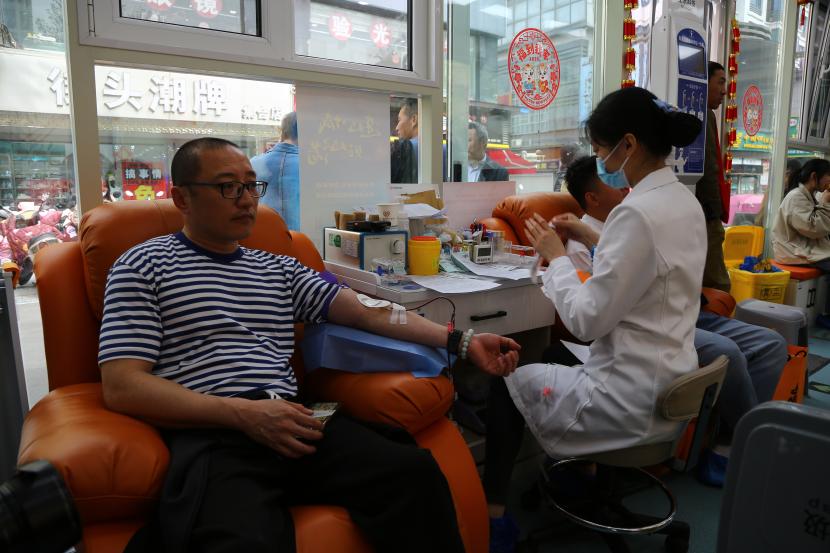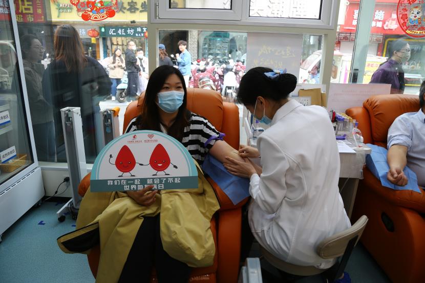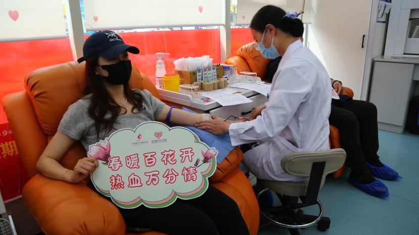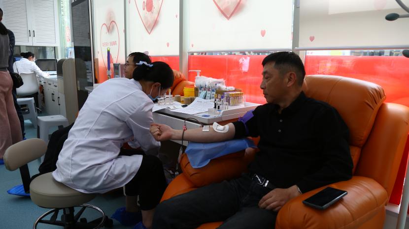 活動現(xiàn)場,在連云區(qū)墟溝愛心獻血屋工作人員的指引下,參加獻血的干部職工有序掃碼登記、測量血壓、抽血化驗,積極配合做好獻血前的各項準(zhǔn)備工作。經(jīng)過體檢、驗血合格后,大家依次捋起袖子捐獻熱血,整個獻血過程有條不紊、秩序井然。此次獻血職工中,既有第一次參加獻血的“新人”,也有獻血累計達6000毫升的“老熟人”,涓涓細流傳真情,滴滴熱血暖人心。