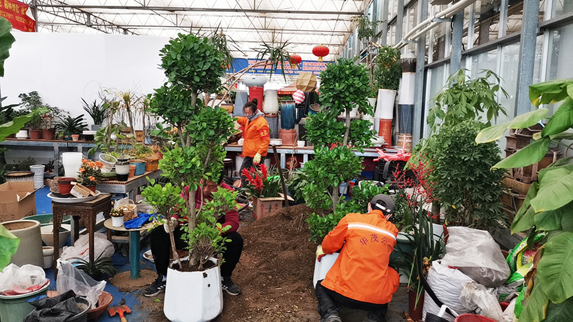 2月24日,走進位于振興花卉城的華茂園藝項目部,室外冰天雪地,室內(nèi)忙碌的身影不斷穿梭……有的在配土上盆、有的在修剪養(yǎng)護、有的在擦洗裝飾,員工們分工協(xié)作、團結(jié)一心、有條不紊地進行花卉綠植的入盆及制作,開足馬力增效益。
