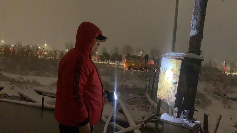 在冰天雪地的先鋒鈣液灘上有一抹亮麗的紅色,他就是鈣液班長程輝,不懼冬日嚴寒,在風雪中堅守崗位兩天兩夜,早早的在先鋒灘上等候一輛輛改裝的除雪神器、灑水車;為他們加滿鈣液,奔赴除雪的第一線,他用實際行動傳遞寒冬里的光與熱。