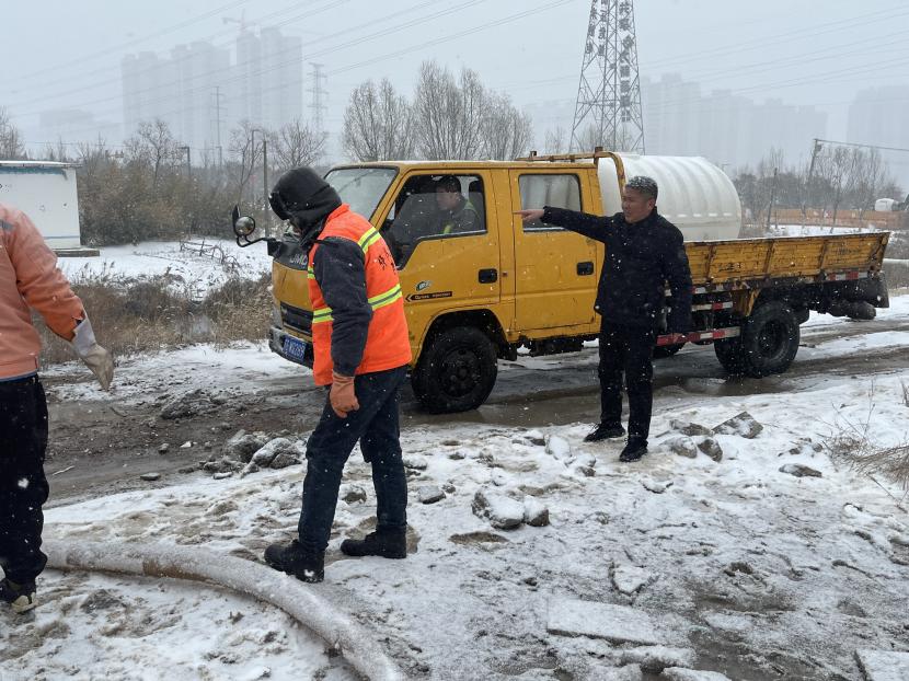 “兵馬未動,糧草先行”。2月21日,資源分公司緊急調(diào)動鈣液儲存車,安排管理人員+工人跟車的模式,奔赴黃海大道、東方大道除冰掃雪的第一戰(zhàn)線,資源分公司負責人劉天義徹夜未眠,居中調(diào)度,及時對接車輛信息,安排灑掃鈣液路線。