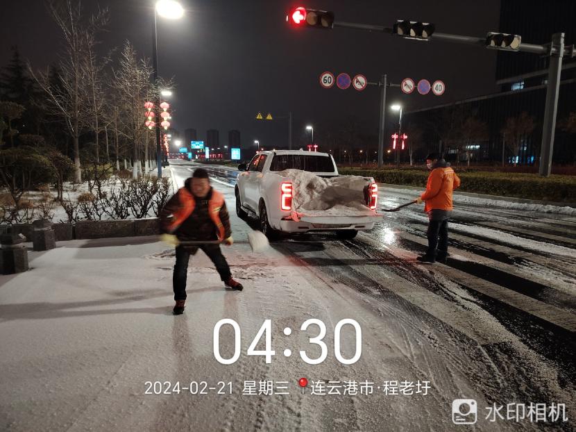 ? ? 2月20日晚,港城迎來又一輪降雪,低溫雨雪冰凍天氣對城市道路交通和市民出行產生較大影響。為確保雪天道路暢通及市民出行安全,綠化分公司聞雪而動,從2月19日晚開始,組織應急隊伍連夜行動,在花果山大道、黃海大道等開發(fā)區(qū)主干道拋撒融雪劑,開展清雪除冰工作,掀起一場齊心協力、團結互助的戰(zhàn)風雪、保通暢行動。