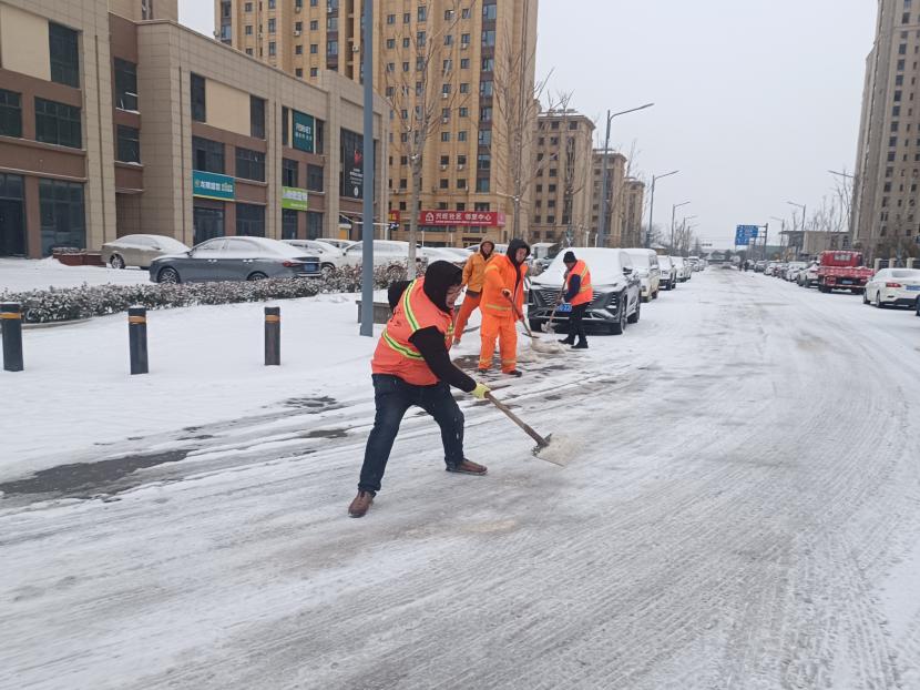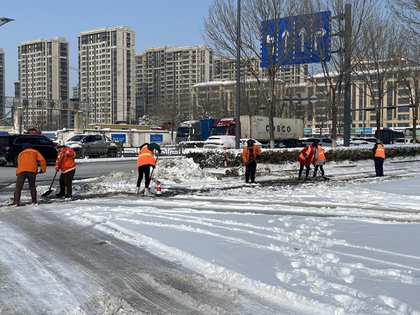 5日凌晨4點,該公司負責人于廣華已經(jīng)在除雪的第一線,積極安排工作調(diào)度,對新光路、平山路、黃海大道等重要路段突擊清掃,大家頂著風(fēng)雪,齊心協(xié)力,分工明確,高效配合,全力清除路面上的積雪和暗冰,及時為車輛和行人清理出一條條“安全路”。