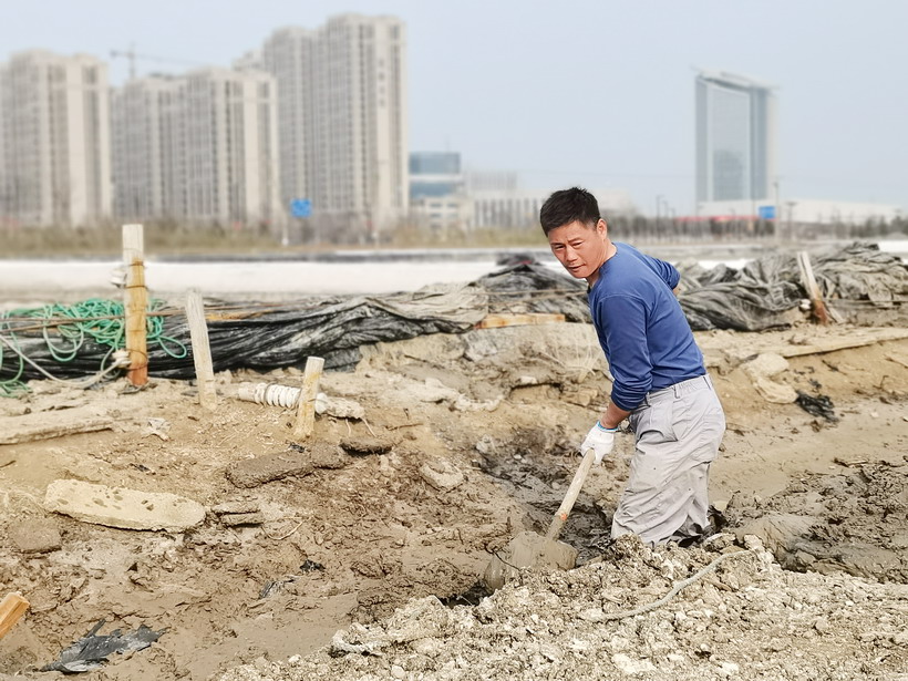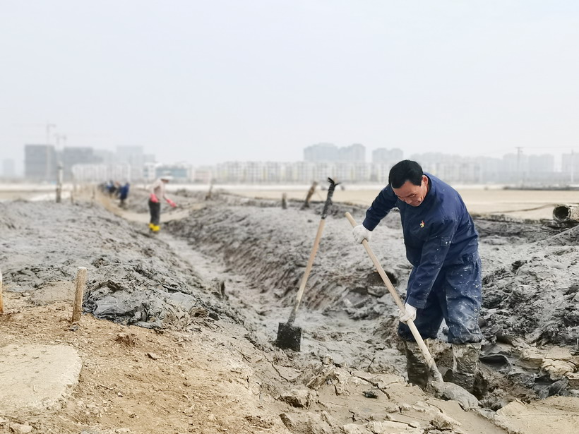 下一站,我們來到海州灣公司先鋒班組,老職工、老組長(zhǎng)沈秀成帶領(lǐng)全組職工正在疏通進(jìn)鹵溝,他們揮動(dòng)著鐵锨,泥土隨著锨頭準(zhǔn)確地落到了堰邊上,一條筆直的新轉(zhuǎn)溝在沈組長(zhǎng)身體的不停移動(dòng)下逐漸形成,看著他那揮汗如雨極為投入的熱情,我們慢慢地向他走進(jìn)。沈組長(zhǎng)看到我們的到來,丟下手中的鐵锨,抹了一把汗水,上前熱情和我們打招呼。他告訴筆者:“堿廠關(guān)了,外面人都說臺(tái)北不行了,我偏不信,我們臺(tái)北黨委有戰(zhàn)略眼光,我們抓住鹽價(jià)上漲大好時(shí)機(jī),礦鹵復(fù)產(chǎn)正當(dāng)時(shí)。自公司冬準(zhǔn)工作開展以來,我們已經(jīng)完成先鋒班組改灘?,F(xiàn)在已經(jīng)入春,2月底我們一定要搶灌池,搶長(zhǎng)鹽,爭(zhēng)取為公司創(chuàng)收創(chuàng)效早做貢獻(xiàn)!”看著老組長(zhǎng)神采奕奕的表情,侃侃而談的神態(tài),看著那一條條堰棱整齊,條線筆直的池堰,對(duì)這位一輩子奮斗在一線的老員工產(chǎn)生了一種敬仰之情。