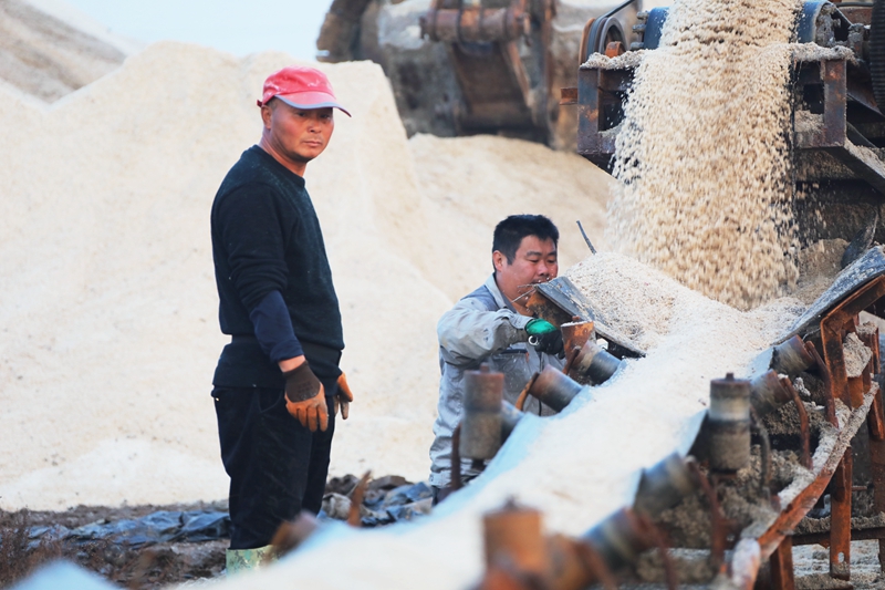 保證過河原鹽集運(yùn)。皮帶機(jī)如果缺乏合理的檢查和維護(hù)工作,容易引發(fā)斷帶、打滑、跑偏、撒鹽等現(xiàn)象。工程隊(duì)成員24小時(shí)待命,按照領(lǐng)導(dǎo)要求,積極參與海州灣公司扒鹽工作,皮帶機(jī)的維修保養(yǎng)以及搬運(yùn)工作,為扒鹽、運(yùn)鹽、銷售等工作保駕護(hù)航。