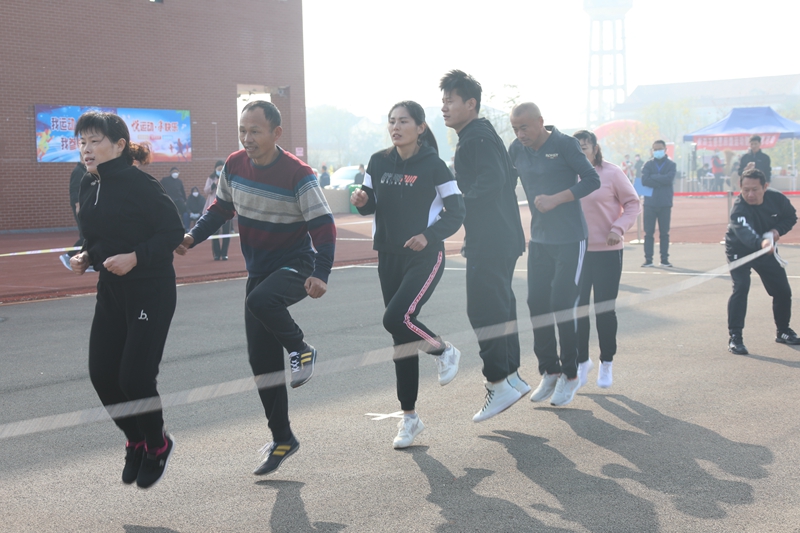 跳繩比賽中,兩位搖繩隊員不斷提醒鼓勵,隊員們則咬牙堅持,相互加油。大家排開一字長陣一個接著一個躍過長繩,步伐輕盈。每一個參賽選手都竭盡所能,以最快的速度躍過長繩,用一次次律動的跳躍動作,挑戰(zhàn)著自己的力量和耐力。最終在大家的齊心協(xié)力下獲得第二名的好成績。