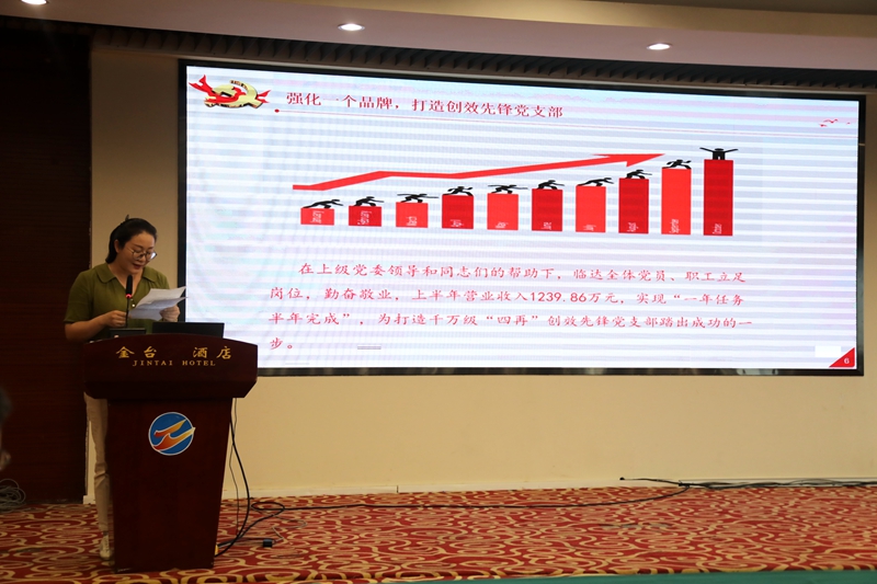 黨委副書記、工會(huì)主席楊善革指出,公司上下緊貼年度黨建工作會(huì)議提出的目標(biāo)任務(wù),以“黨建品牌提升年”為依托,根據(jù)生產(chǎn)經(jīng)營實(shí)際,精心設(shè)計(jì)載體,創(chuàng)新工作方法,采取有力措施,黨建工作與經(jīng)濟(jì)工作相互交融、相得益彰取得了新的進(jìn)展,助推公司實(shí)現(xiàn)“一年任務(wù)半年完成”目標(biāo)。下半年,要始終堅(jiān)持全年目標(biāo)任務(wù)不動(dòng)搖,責(zé)任再強(qiáng)化,措施再細(xì)化,在匯聚合力、聚集中心、矢志創(chuàng)新、提質(zhì)增效等方面抓特色、樹品牌,抓典型、樹標(biāo)桿,努力取得黨建工作新的突破,保障實(shí)現(xiàn)“過五超六”,轉(zhuǎn)型創(chuàng)效目標(biāo),進(jìn)一步奠定經(jīng)濟(jì)發(fā)展基礎(chǔ)。