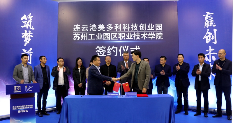 5月11日,投資公司美多利科創(chuàng)園與蘇州工業(yè)園區(qū)職業(yè)技術(shù)學(xué)?!爱a(chǎn)教融合”項(xiàng)目簽約儀式在“??汀北妱?chuàng)空間隆重舉辦。開發(fā)區(qū)教育工委委員、社會(huì)事業(yè)局教育處處長劉益國等領(lǐng)導(dǎo),蘇州工業(yè)園區(qū)職業(yè)技術(shù)學(xué)院繼續(xù)教育學(xué)院院長魏剛等校方代表,投資公司全體領(lǐng)導(dǎo)班子,美多利公司全體領(lǐng)導(dǎo)班子參加了簽約儀式。