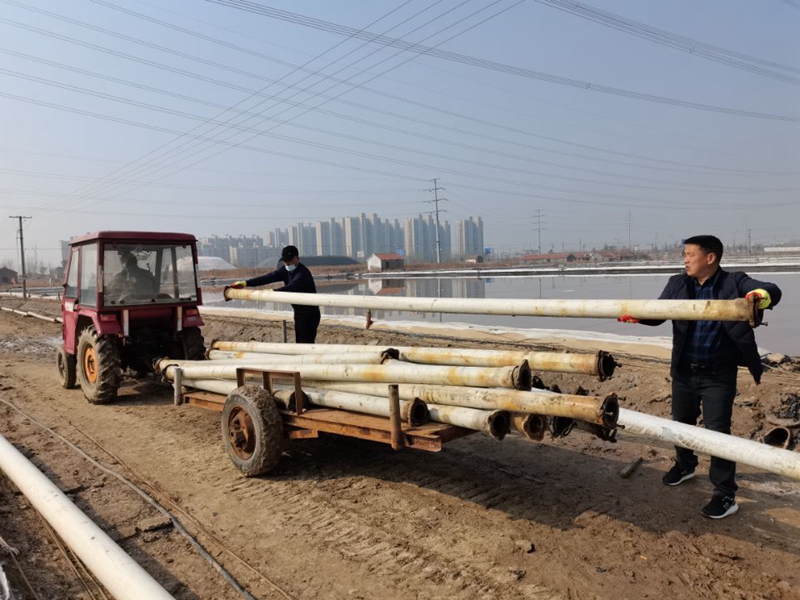 東灘現(xiàn)有長鹽格塊10塊,共計(jì)600公畝,預(yù)計(jì)出鹽量6000噸。為了在征收前,實(shí)現(xiàn)公司利益最大化,鹽池里不留一粒原鹽,海州灣公司多次召開生產(chǎn)骨干會議,研究部署,合理安排扒鹽時(shí)間,決定先人工扒東灘二班4塊鹽池,余下6塊鹽池利用春季有利天時(shí)繼續(xù)長鹽,在土地征收前的最后一個(gè)月,突擊搶扒,做到顆粒歸倉。本次東灘預(yù)計(jì)扒鹽時(shí)長一周,出鹽量2500噸。