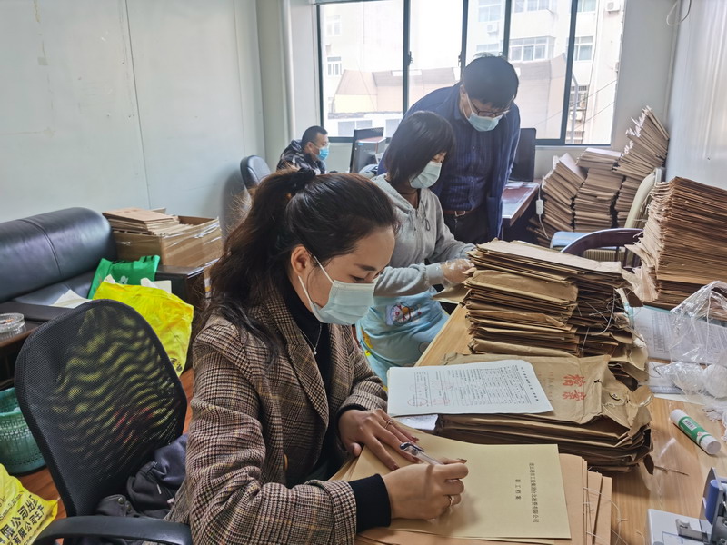 在檔案整理現(xiàn)場,大家通力配合,有的整理檔案、有的輸入電腦、有的仔細(xì)核對,加班加點做好退休人員基本信息和檔案整理、登記造冊等工作,有條不紊、熱火朝天。工作人員層層壓實責(zé)任,細(xì)化任務(wù)分工,編制移交清單,對各個時期的人事檔案材料及時進行梳理、鑒別、整理、裝訂,確保內(nèi)容真實準(zhǔn)確、材料齊全完整。此次涉及移交檔案1580卷,已經(jīng)完成1300余卷,其余部分將于近期陸續(xù)完成。