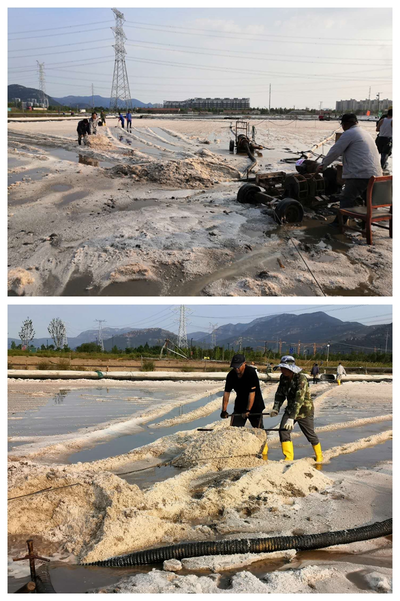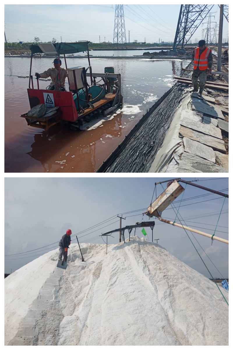 海州灣公司開定制的新式扒鹽機(jī)械正式投入使用,秋季生產(chǎn)如火如荼地進(jìn)行中。