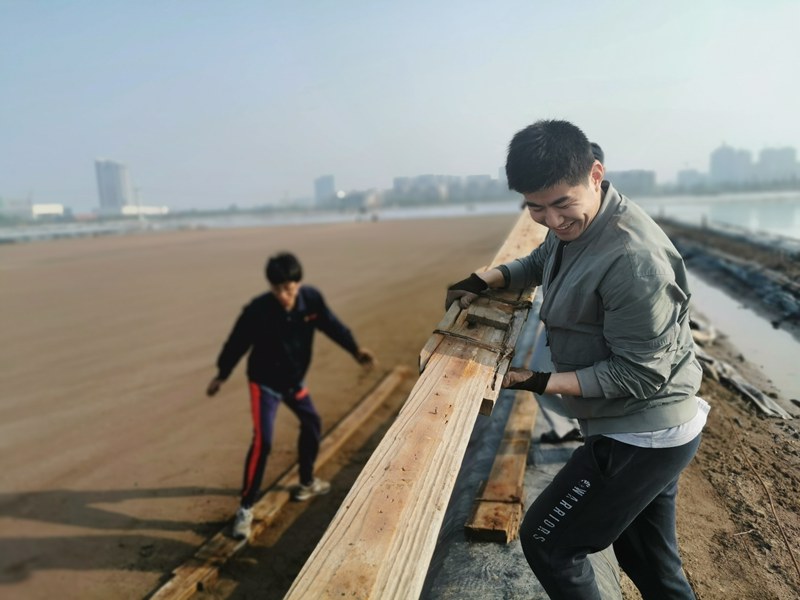 烈日酷暑下,大家用汗水編織出一幅激情四射的勞動(dòng)圖。38度的高溫,3個(gè)小時(shí),1500余米的浮板安裝被順利拿下。
