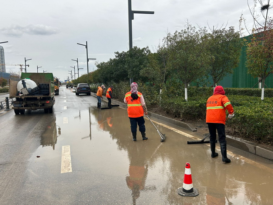 本次路線保障是今年以來最大規(guī)模任務,遵循“每個重要現(xiàn)場必有安全員,必有班組長,必有機械設(shè)備”的要求,8個保潔班組,1個垃圾清運班組,1個清掃車隊,1輛鏟車,一層管理人員共160名職工全部出動。長達3天的路線保障中,清理落葉3.7噸,車輛行駛里程超1500公里,覆蓋防塵網(wǎng)近3000平方米,期間在開發(fā)區(qū)多次的突擊檢查中都能受到高度贊賞,為大合同簽訂再贏口碑。