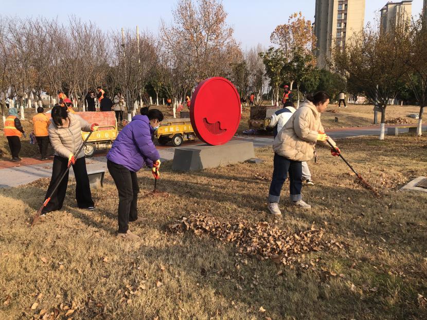 活動現(xiàn)場,黨員同志、積極分子分為兩撥,分別從創(chuàng)智綠園北門和東門對園內(nèi)雜草落葉進(jìn)行清除。在戴好手套,做好防護(hù)、防凍措施的同時,紛紛拿著掃帚、耙子等工具,統(tǒng)籌安排、分工勞作,齊心協(xié)力,有的用掃帚掃落葉、有的用袋子裝落葉、有的用耙子摟落葉……大家忙得熱火朝天,充分發(fā)揚(yáng)不怕臟、不怕苦、不怕累的黨員先鋒本色,創(chuàng)智綠園內(nèi)處處是同志們清理雜草落葉的身影,構(gòu)成了一道亮麗的風(fēng)景線,經(jīng)過一個多小時的辛勤勞動,兩撥隊(duì)伍順利“會師”,沿途雜草落葉被清理得干干凈凈,公園環(huán)境也得到明顯改善。