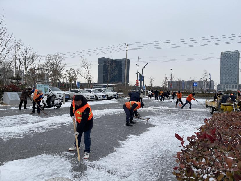 ? ? “風(fēng)雪無情 志愿有愛”。活動中,大家不顧凜冽寒風(fēng),積極除雪、干勁十足,有的用鐵鍬鏟除冰塊,有的用掃帚清掃積雪。鐵鏟、掃帚與地面的摩擦聲此起彼伏,譜寫了悅耳動聽的清脆樂曲。志愿者一鐵鍬、一笤帚將積雪推至路邊,經(jīng)過連續(xù)奮戰(zhàn),園區(qū)內(nèi)路面積雪得到及時清理,通行逐漸恢復(fù)順暢。