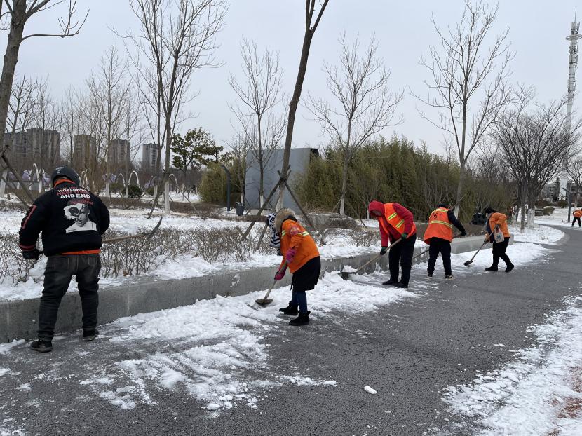 ? ? 此次鏟冰除雪行動仍在進行,鏟的是責(zé)任,暖的是人心。經(jīng)過志愿者的共同努力,園內(nèi)的積雪情況得到有效緩解。一條條整潔的道路給群眾送去的不僅是方便和安全,更是一份溫暖和正能量,志愿精神讓這份溫暖在大雪中不斷蔓延。