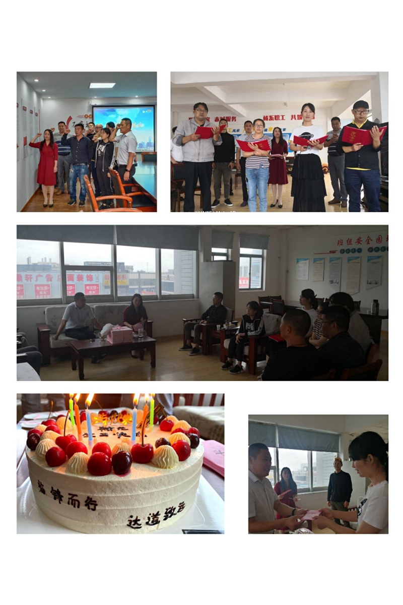 書記致辭。為黨員同志送上暖心祝福話語(yǔ),向職工群眾提出爭(zhēng)先奮進(jìn)希冀,替臨達(dá)公司樹立更進(jìn)一步目標(biāo)。重溫誓詞。進(jìn)一步增強(qiáng)黨性,牢記黨的宗旨,恪守黨的紀(jì)律,堅(jiān)定理想信念,充分發(fā)揮先鋒模范作用。贈(zèng)送賀卡。書記親手為黨員同志們制作賀卡、寫下寄語(yǔ),送到黨員同志們的手中。集體誦讀。全體職工高聲朗誦了詩(shī)詞《我的祖國(guó)》,激發(fā)愛國(guó)熱情,陶冶愛國(guó)情操。活動(dòng)最后,公司工會(huì)為職工精心準(zhǔn)備了豐盛的生日餐,讓職工深深體會(huì)到來自“娘家人”的溫暖。