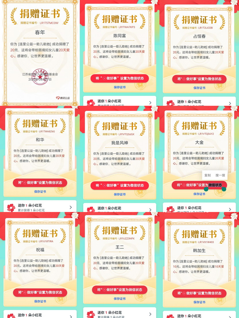 “99公益日”是響應(yīng)國家9月5日中華慈善日號召,由騰訊公司聯(lián)合數(shù)百家具有公開募集資質(zhì)的慈善組織共同發(fā)起的全民公益活動。近年來,在海州灣公司,傳播社會正能量、弘揚社會正氣的良好氛圍日益濃厚,涌現(xiàn)出撿數(shù)千元現(xiàn)金歸還失主的朱文健、幫扶救助中暑暈倒老人的王緒峰、免費理發(fā)多面手霍正鋼等等數(shù)名愛心職工。在“99公益日”募捐活動中,雖然公益平臺最低募捐金額1元即可,但是廣大職工盡力奉獻(xiàn)自己的一份力量,10元20元比比皆是,氣氛十分熱烈。大家紛紛表示,奉獻(xiàn)愛心、扶貧濟困是每個社會公民應(yīng)盡的責(zé)任和義務(wù),只要人人都獻(xiàn)出一點“愛”,就能形成“滴水成河、匯流成?!钡陌蹴缌α?/span>!