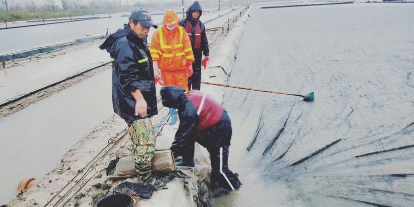 不僅僅是礦鹽班組,在海濱鈣液灘,老黨員、領(lǐng)灘手伏廣銀、董良平一直堅守在崗,他們不僅干好自己的本職工作,在其他領(lǐng)灘手被居家管控的時刻,他們來到其他單元幫助走水以及其他日常工作,經(jīng)常一干就是12個小時;在鈣液原料水儲備池,龔成春每天是按時按點到達灘地,進行灘地巡視,做好巡視登記,沒有因為疫情影響而耽誤一天,遇上暴風雨等惡劣天氣,他就住在值班室,每天晚上要加巡一次,保證僅有的原料水能得到最大化的利用;在鈣液銷售點,程輝、徐松保響應疫情防控應急預案,備齊醫(yī)用口罩,酒精,消毒液等防疫物資,每天對前來的鈣液運輸車進行消毒,對司機進行體溫測量、“三碼”登記,確保鈣液銷售安全有序。