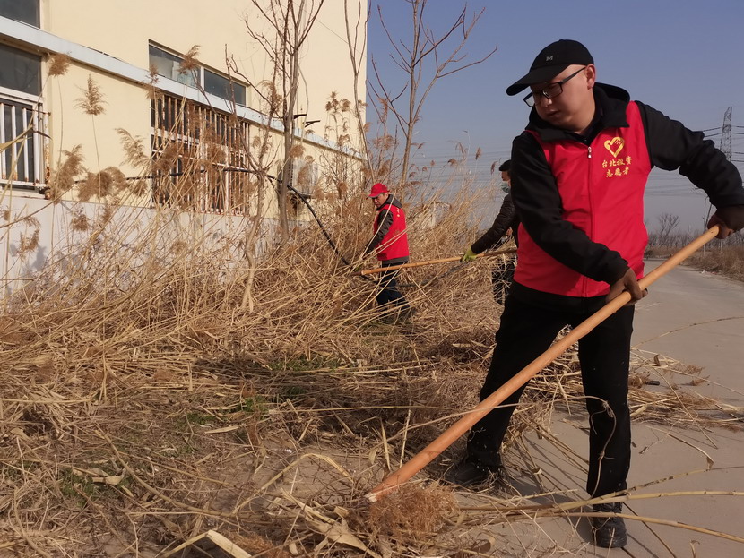 ? ? ? ? 3月4日,按照活動統(tǒng)一安排,志愿者們紛紛抵達各自點位開展統(tǒng)一活動,本次活動主要是清理公司主次干道兩邊的雜草以及各種彩色垃圾?;顒又?,身著紅色馬甲志愿者分工協(xié)作,首先由男同志們對周邊的蘆葦、鹽薅進行地毯式收割,大家揮動著鐮刀、鐵锨,干的十分起勁,顧不得漫天飛舞的蘆葦花和灰塵。女同志們負責用釘耙將割下的雜草以及死角里的彩色垃圾,摟到一起便于集中清理。在勞動過程中大家互相幫助、互相合作,很好的展現(xiàn)了集體的團結協(xié)作精神,有的同志手不小心被木板上的釘子劃傷了,擦干凈血接著干。經(jīng)過2個小時的清理,主次干道煥然一新。