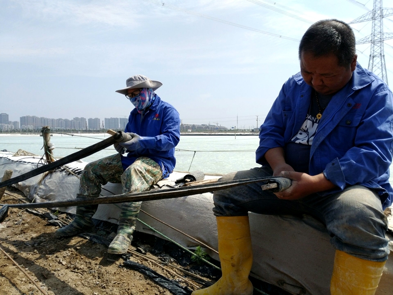 大浦工區(qū)更換塑池浮板確保鹽產量