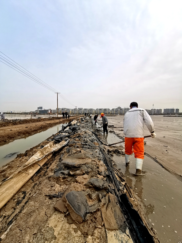簡單交流后得知,東灘4組要趕在月底之前,將原來用作復曬的格塊重新改為結晶池,搶抓旺季增加產量,而東灘人員少,工作量大,僅憑現(xiàn)有的10余名職工,等改造完了灘地,可能就已進入了雨季,無奈之下請海州灣公司伸出援手。