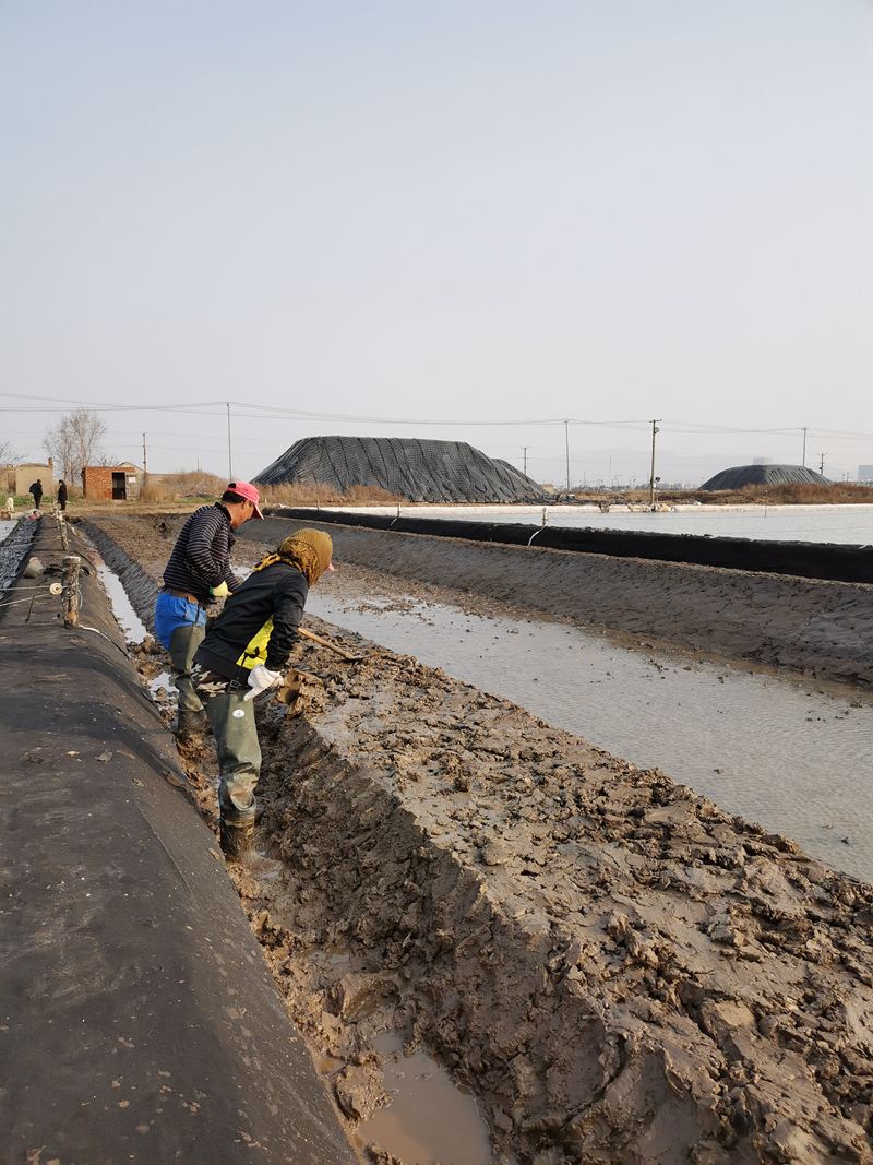 “駕駛挖掘機的是我女婿,這塊地以前是征地廢棄的,現(xiàn)在打好堰就能用起來。”新上任的領(lǐng)灘手徐傳禮指著正在土方作業(yè)的挖掘機,算起了賬,“今年多產(chǎn)50噸鹽沒問題,自掏腰包改造還是劃算的?!?/span>
