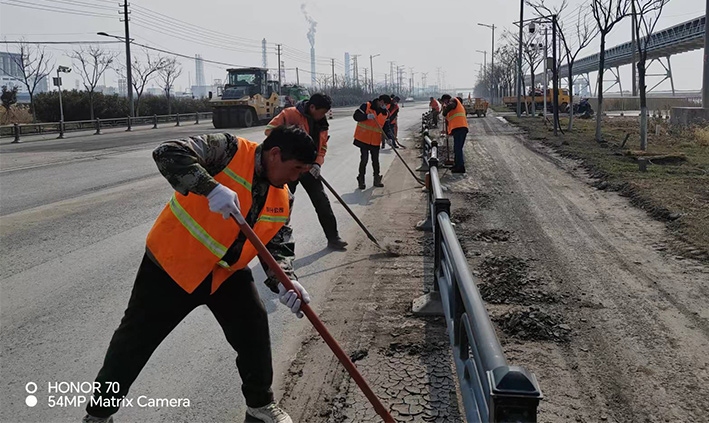 3月15日,該分公司近15余名黨員突擊隊(duì)員,在黨支部號(hào)召下,無(wú)視春光照曬、三人一組、兩個(gè)一對(duì)、揮動(dòng)手中鐵銑,無(wú)懼泥土揚(yáng)塵四起,清除蘇海路,港前卡口護(hù)欄下車(chē)輛拋灑泥土2000多米長(zhǎng),人工清掃護(hù)欄內(nèi)石子30多處,車(chē)輛轉(zhuǎn)運(yùn)20多車(chē)。黨員陳小軍、陳海彬等同志盡管手磨破了,仍然堅(jiān)守道路最前沿,經(jīng)過(guò)30余名隊(duì)員兩天持續(xù)奮戰(zhàn),整潔靚麗的路面再次展現(xiàn)石化園區(qū)。