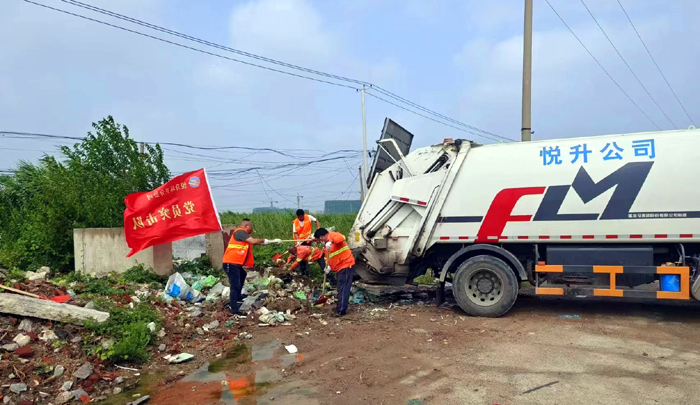 ? ? ? ?8月22日上午,室外熱浪滾滾,橙色工作服在強(qiáng)烈陽(yáng)光照耀下顯得格外引人注目。環(huán)衛(wèi)分公司黨員突擊隊(duì)第一時(shí)間加入到環(huán)境衛(wèi)生“治理”中。活動(dòng)中,隊(duì)員們沖鋒在前,不怕臟、不怕累,及時(shí)對(duì)轄區(qū)各類生活垃圾進(jìn)行清理。在轉(zhuǎn)運(yùn)各類垃圾過程中,該分公司管理人員身先士卒,積極與大家奮戰(zhàn)在一起,經(jīng)過4個(gè)小時(shí)的連續(xù)作戰(zhàn),共清理垃圾點(diǎn)4處,清運(yùn)垃圾約7余噸。