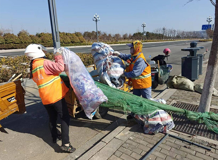 保潔道路有力度。此次大保障期間,該分公司百余名一線保潔員工,9位班長帶動下,無視春光照曬,人工揮動掃把清掃核心區(qū)域輔道1000多米長,突擊清理河道岸邊各種丟棄垃圾500多包,清理園區(qū)卡口處車輛拋灑石子30余車,道路現(xiàn)場身穿橙色服裝保潔員工,來回不停地徒手清撿園區(qū)道路兩側(cè)各類白色垃圾100多包。