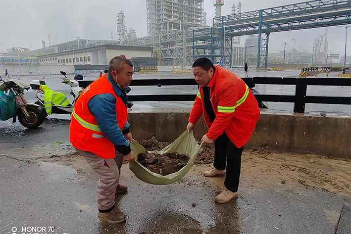 12月13日夜里,受北方冷空氣影響,徐圩地區(qū)普降中雨。為保障石化園區(qū)冬季道路周邊環(huán)境整潔靚麗,園區(qū)近10余名黨員先鋒無懼風雨,樂于奉獻堅守道路最前沿,風雨中彰顯黨員敬業(yè)高尚風采。