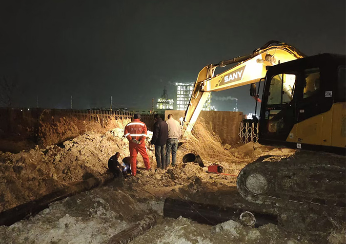 深夜10時(shí)許,一處施工現(xiàn)場(chǎng),施工正酣,挖掘機(jī)轟鳴聲不斷,工人們還在加緊作業(yè),雖冬日寒意逼人,工地上仍是一派熱火朝天的景象。陸建軍、季小東等施工人員克服重重困難,破路面,挖掘管路泥土,熔接,鋪設(shè)管道,在遇到的每個(gè)困難中,都傾盡全力,擔(dān)當(dāng)作為。經(jīng)過(guò)十余天緊張施工,已完成直徑400PE管道768米、直徑200給水管道804米鋪設(shè)工作,完成工作量99%,滿足了規(guī)劃的總體要求,后續(xù)修筑檢查井也在有序進(jìn)行中。(楊維軍)