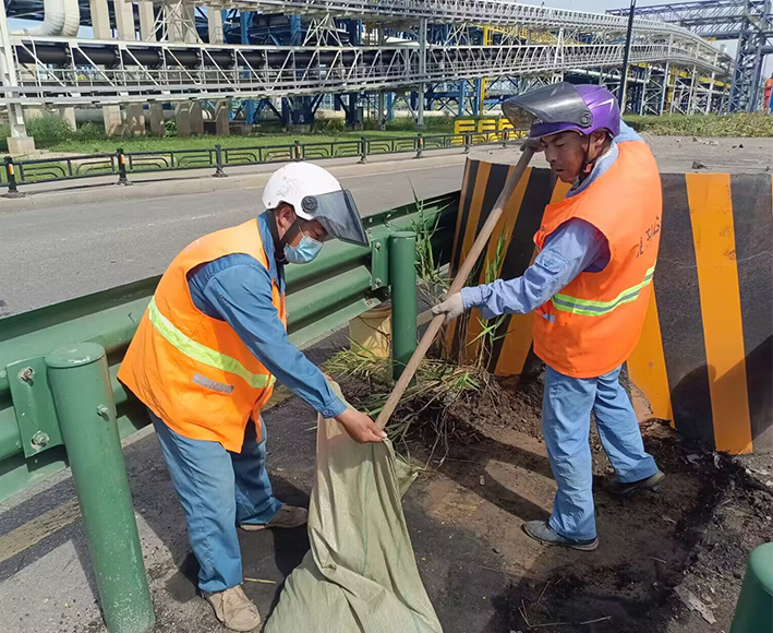 示范引領處處呈現。節(jié)前環(huán)境大治理工作開展以來,全公司下掀起“大干15天、再創(chuàng)新佳績”勞動競賽活動。道路一線黨員示范作用有力得以彰顯。黨員張學軍、龔飛、姚功、陳小軍等同志工作中爭先恐后,臟活累活沖鋒在前,呈現出熱火朝天的繁忙工作景象。園區(qū)班組、女子班組突擊清理道路兩邊的雜草、岔路口泥土,大型車輛拋灑石子。清理路面達3000多米長,清理打包深秋梧桐落葉達100多袋,確保行車安全與環(huán)境治理同步進行。