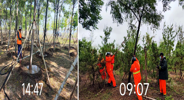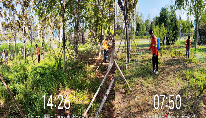 ? ? ? ?工作中,技術(shù)人員李傳武與管養(yǎng)班組長班長田恒亮、協(xié)管員葛承東奮戰(zhàn)在第一線,身先士卒,無懼高溫及蚊蟲叮咬,班組成員在其感染下,步調(diào)一致、步步為營,有序推進(jìn)各項(xiàng)工程進(jìn)度。經(jīng)統(tǒng)計(jì),在張圩港河公園100萬平方米草坪綠化帶上開展各類修剪10次、雜草反復(fù)清理近20次、病蟲害藥物消殺4次、新栽各類苗木600余株、清理枯死樹木300余株、對(duì)相關(guān)造型樹進(jìn)行修型。在防汛抗旱維綠工作,采取白天人工澆水搭配晚間滴灌澆水的方法,確保綠綠植健康生長;暴雨后扶正傾倒樹木11余株,積極排澇2次……各項(xiàng)工作數(shù)據(jù)一路“飄紅”。