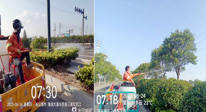 8月23日,綠化分公司管養(yǎng)轄區(qū)內進行植物病蟲害專項檢查。檢查中發(fā)現徐新路、228國道、南京路、上海路等出現病蟲害,造成苗木一定的枯死、病害。該分公司根據苗木習性迅速制定整改方案對癥下藥,實行按片劃分,責任到人。各班組抓住病蟲害防治的有利時機,嚴格執(zhí)行農藥安全使用規(guī)定,采用生物制劑等低毒高效農藥,嚴格控制用藥比例,利用機動噴霧器等工具進行噴灑農藥。對枝干害蟲較嚴重的樹木,進行重點清理,增加噴藥次數,全方位控制病蟲害疫情的擴大和蔓延,有效保護了徐圩新區(qū)綠化植被的健康生長。噴灑農藥結束后,藥罐統(tǒng)一回收,按要求處理,預防二次污染。