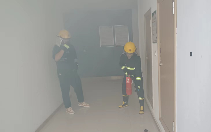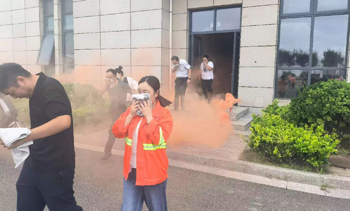 本次演練模擬公司辦公樓三樓電纜井因電路故障引發(fā)火情組織職工開展應急疏散。“起火啦!”15時許,辦公樓三樓一電纜井內(nèi)突然涌出滾滾濃煙。臨近人員發(fā)現(xiàn)著火后,第一時間使用滅火器進行撲救。濃煙觸發(fā)自動報警裝置,消防控制室值班人員接到警報后,立即通知志愿消防隊伍趕赴現(xiàn)場撲救,并撥打報警電話,向應急指揮部報告。公司應急指揮部立即啟動應急預案,滅火搶救組、安全救護組、緊急疏散組等應急小組隨即到位,有條不紊開展滅火、疏散等工作。消防救援隊伍到達現(xiàn)場后,接過現(xiàn)場指揮權,開展滅火救援。安全搶救組搜索受傷人員,并對受傷人員簡單急救后送往醫(yī)院進行治療,緊急疏散組立即組織辦公大樓人員,用濕毛巾捂住口鼻從應急通道撤離。10分鐘后,險情排除,應急救援結束。最后,組織部分人員開展滅火實操演練